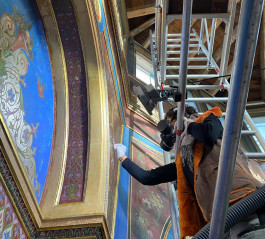 Oberflächenreinigung, Klebung von Fragmenten, Kittungen, Behandlung von vergoldeten Elementen